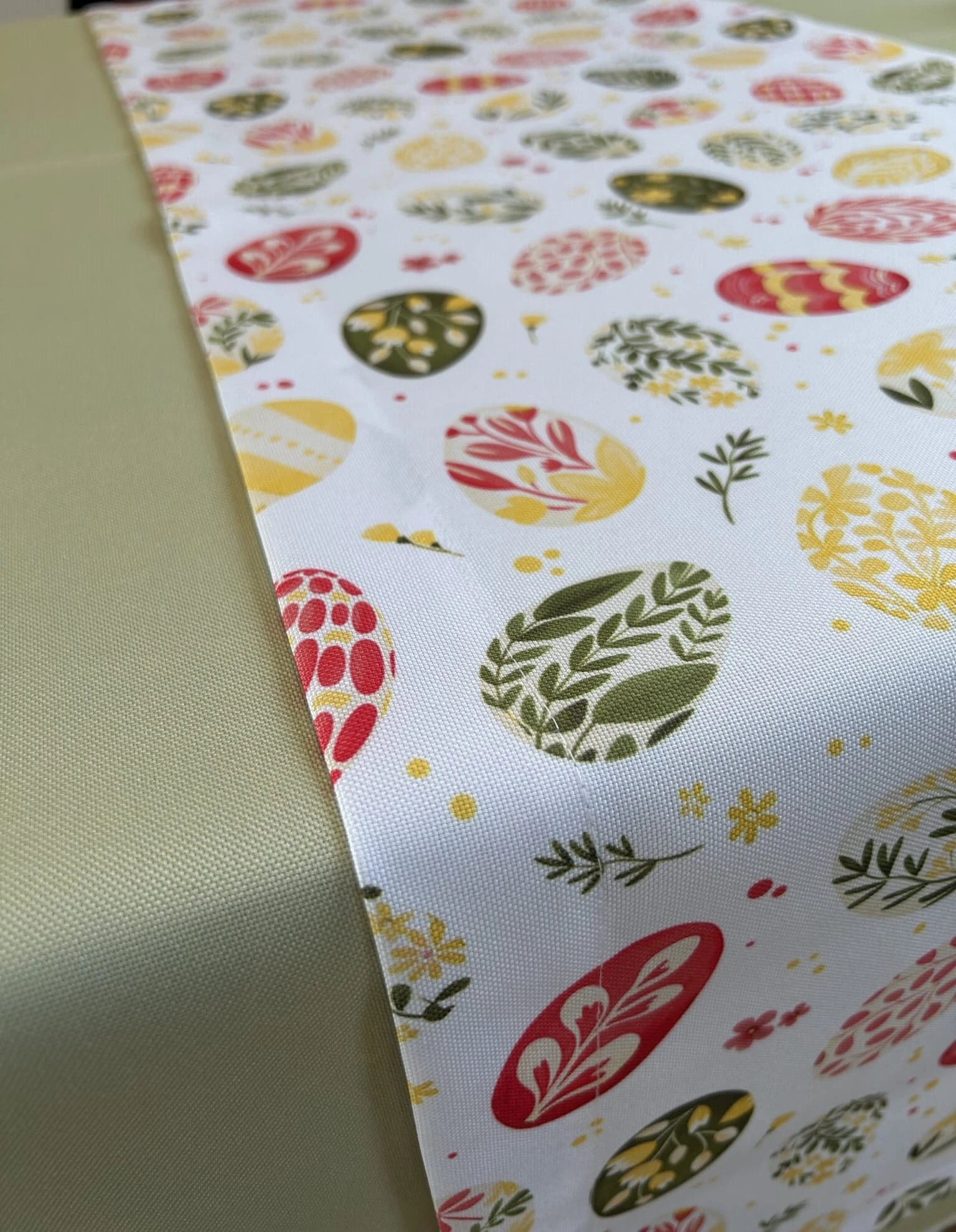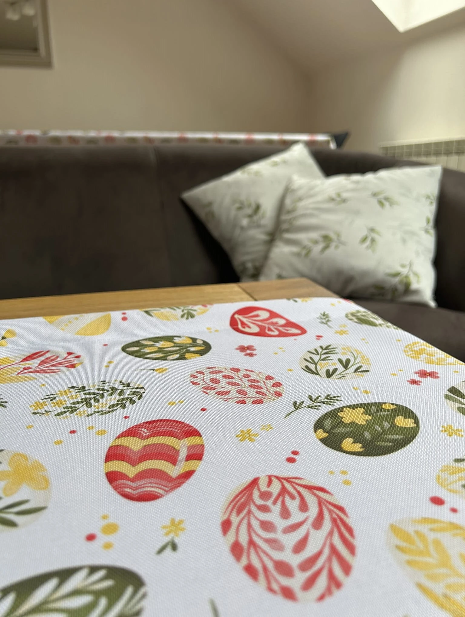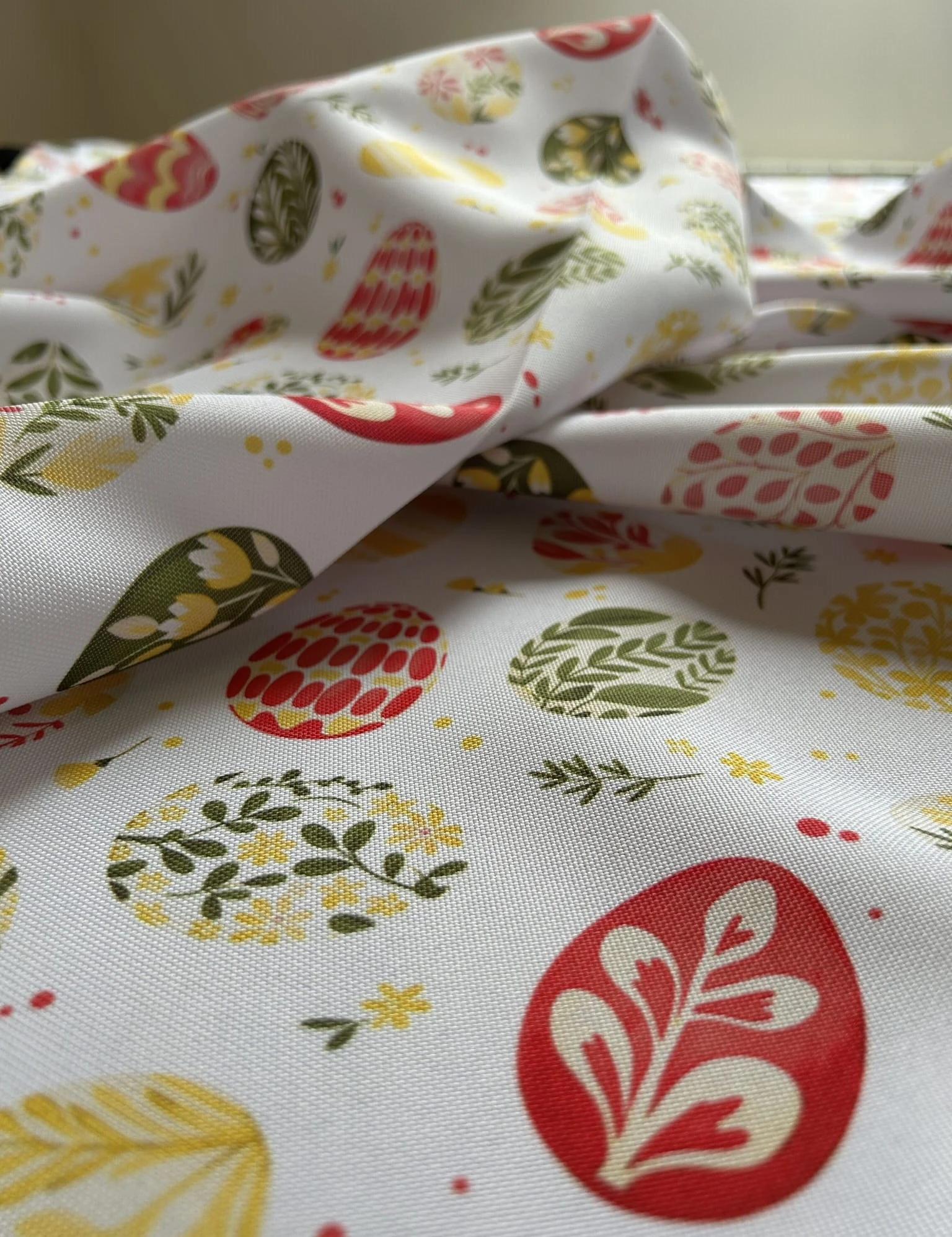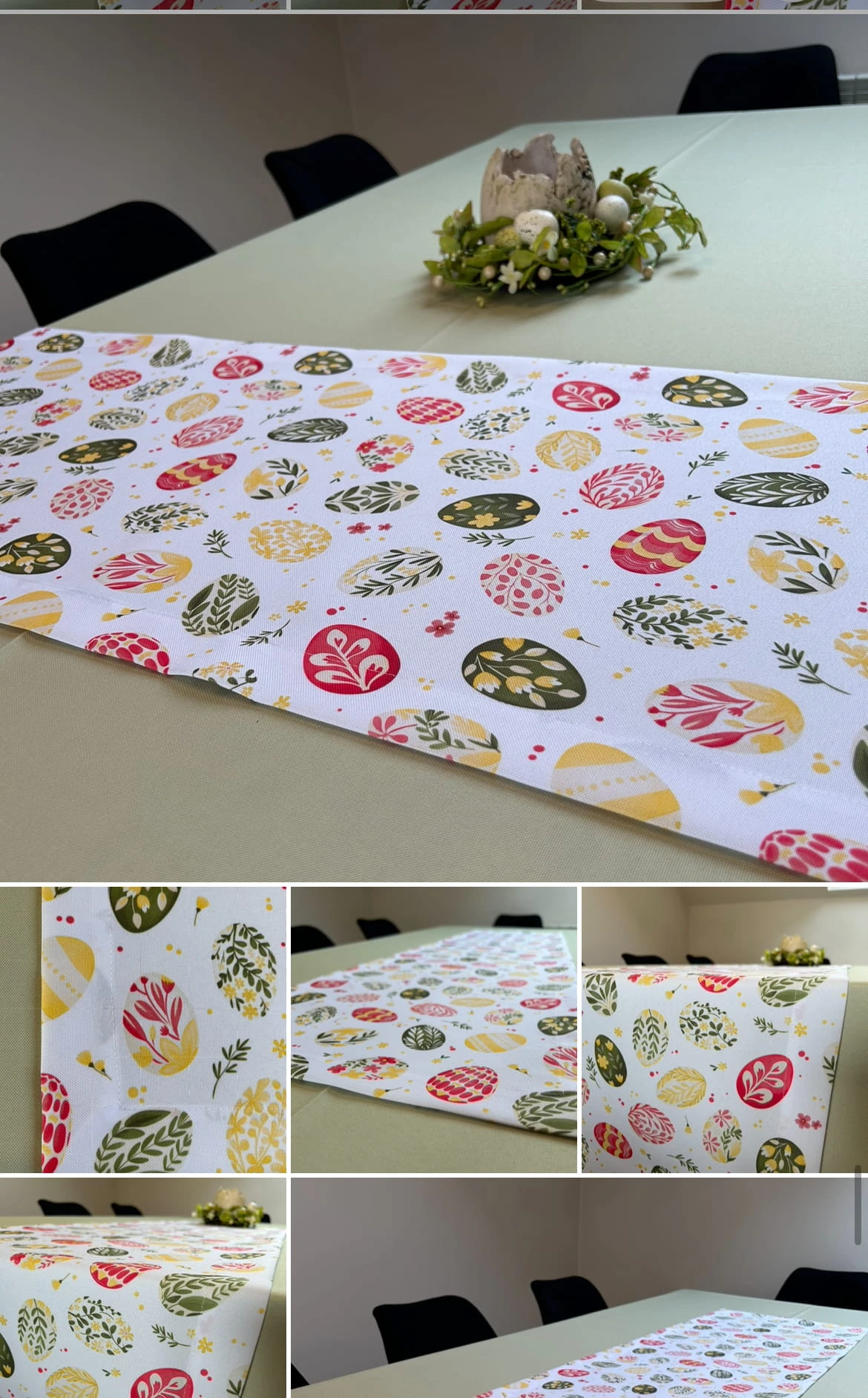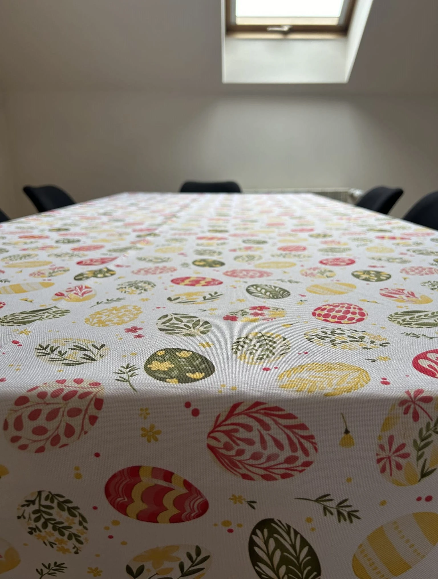 Biały obrus z kolorowym PISANKAMI WIELKANOCNYMI został uszyty z tkaniny wodoodpornej. Ponadto jest on starannie wykończony 4 cm listwą. Występuje w kilku rozmiarach.
