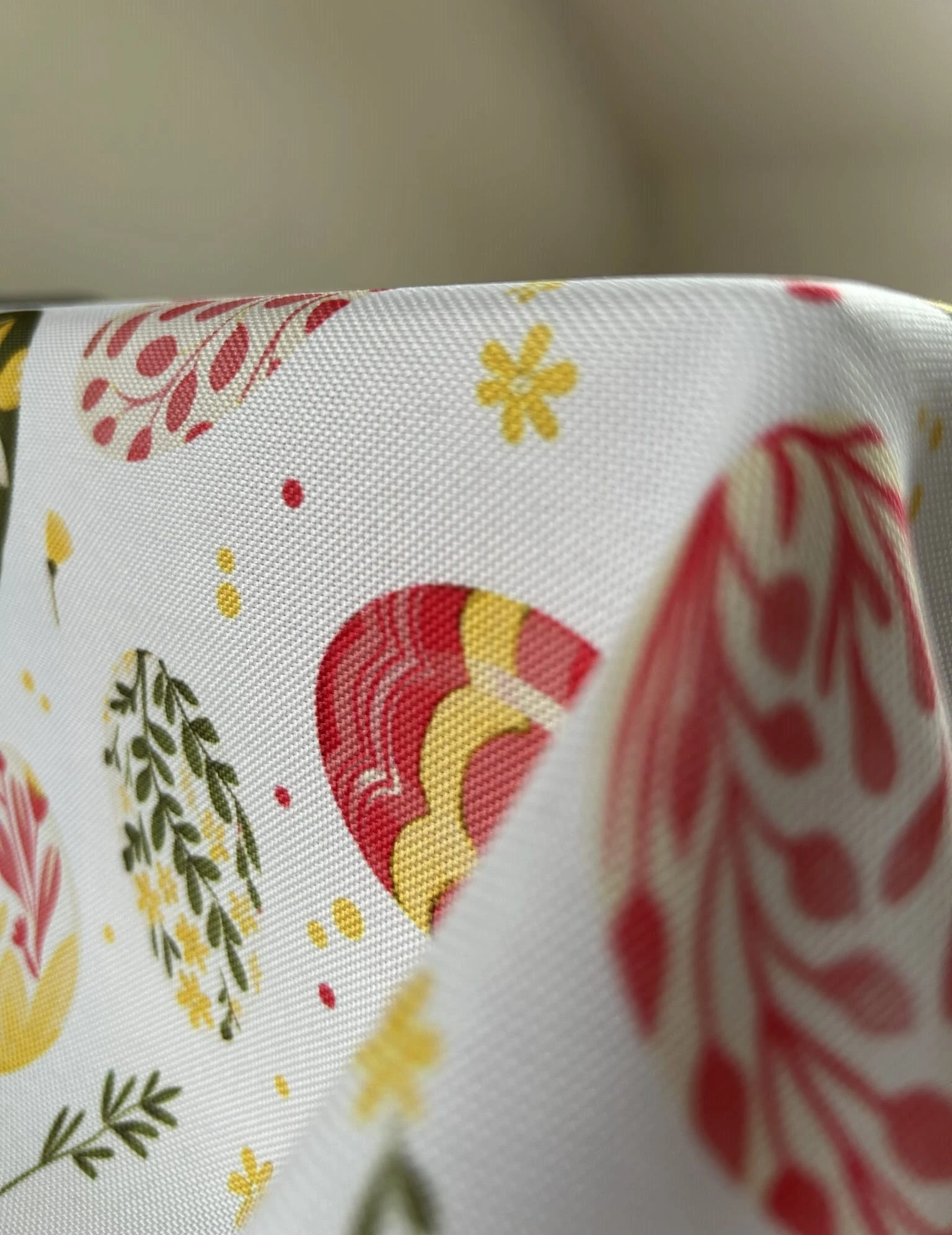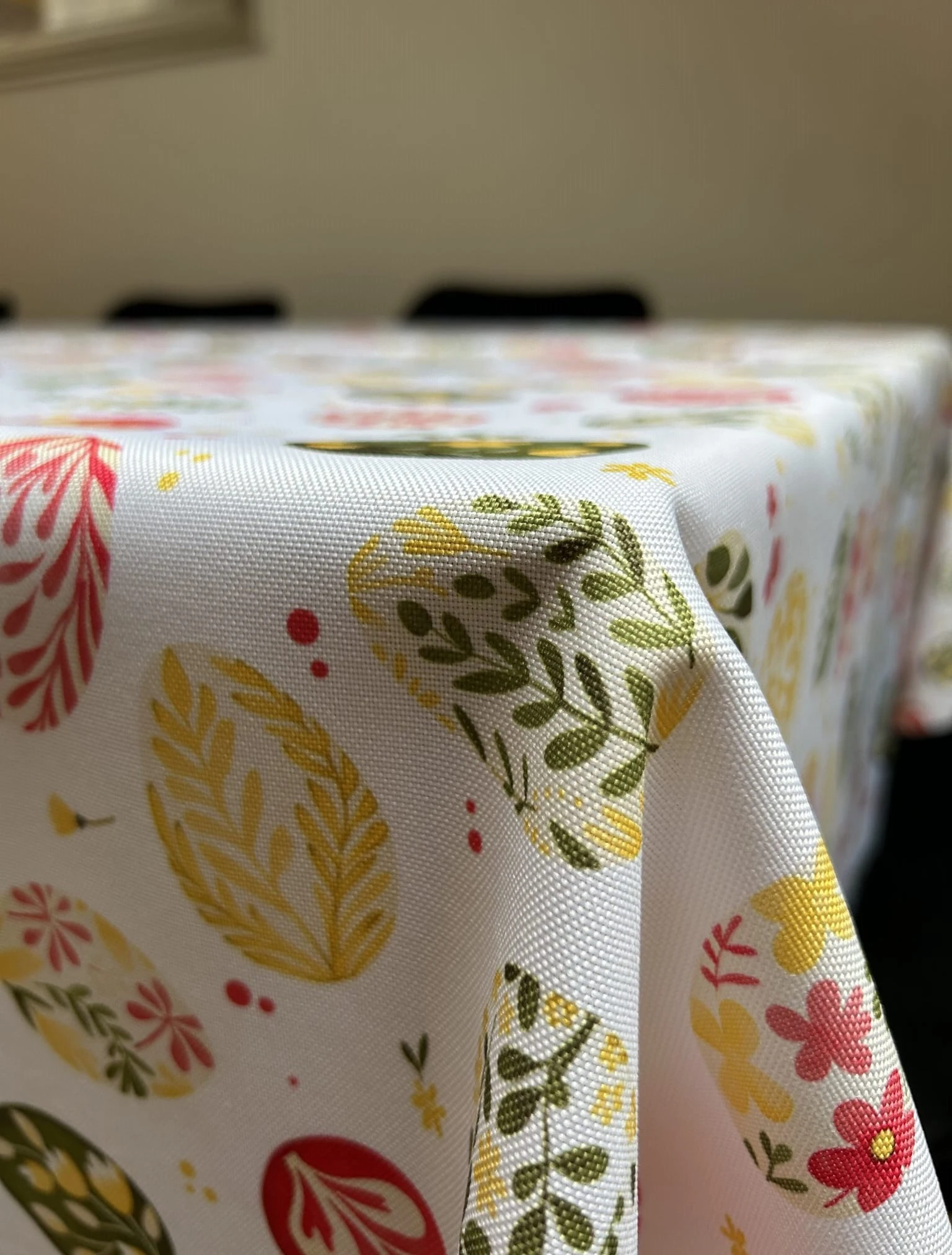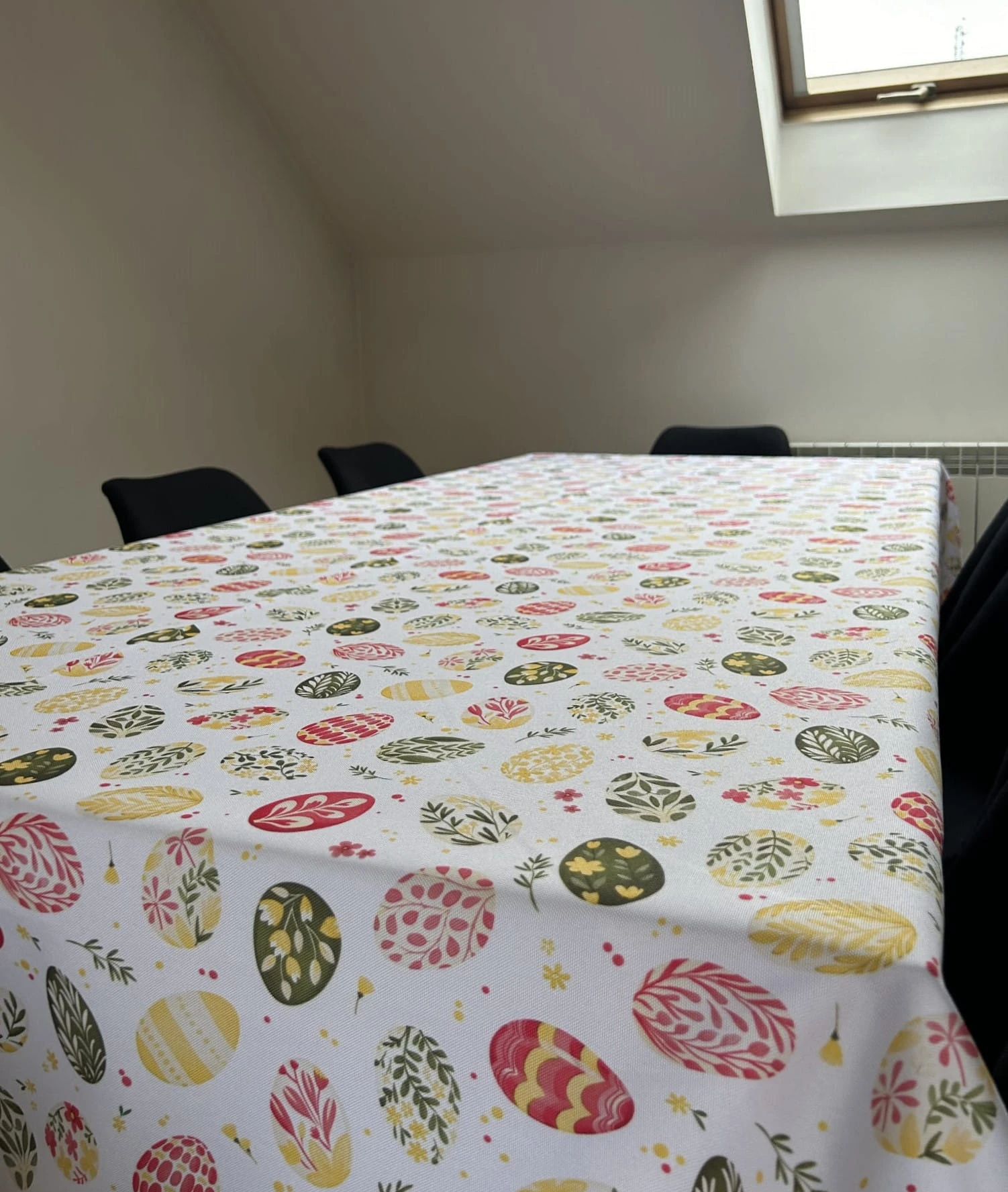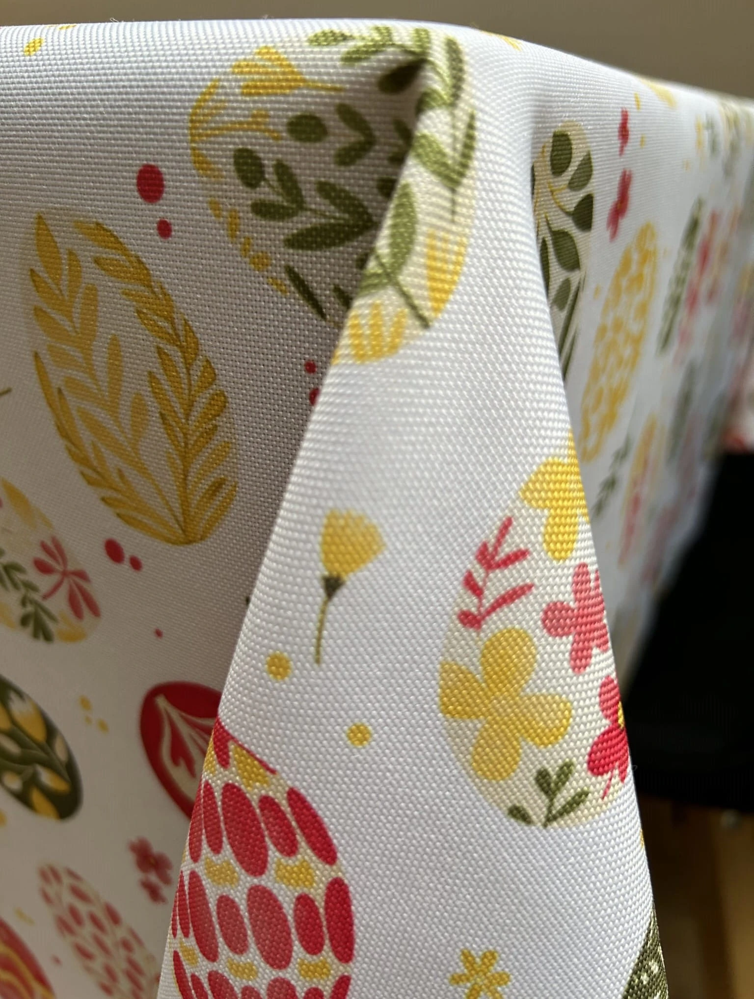 Biały obrus z kolorowym PISANKAMI WIELKANOCNYMI został uszyty z tkaniny wodoodpornej. Ponadto jest on starannie wykończony 4 cm listwą. Występuje w kilku rozmiarach.