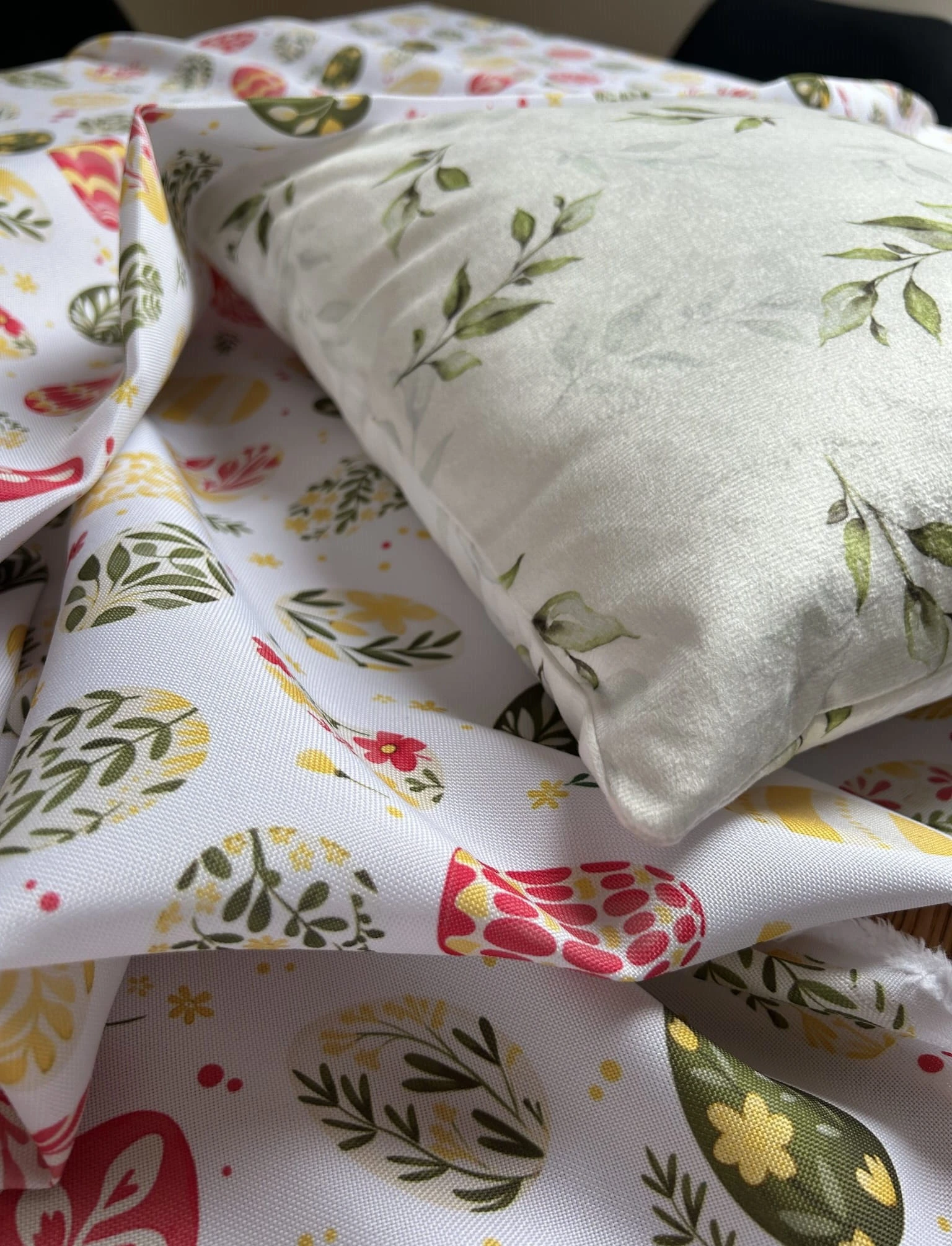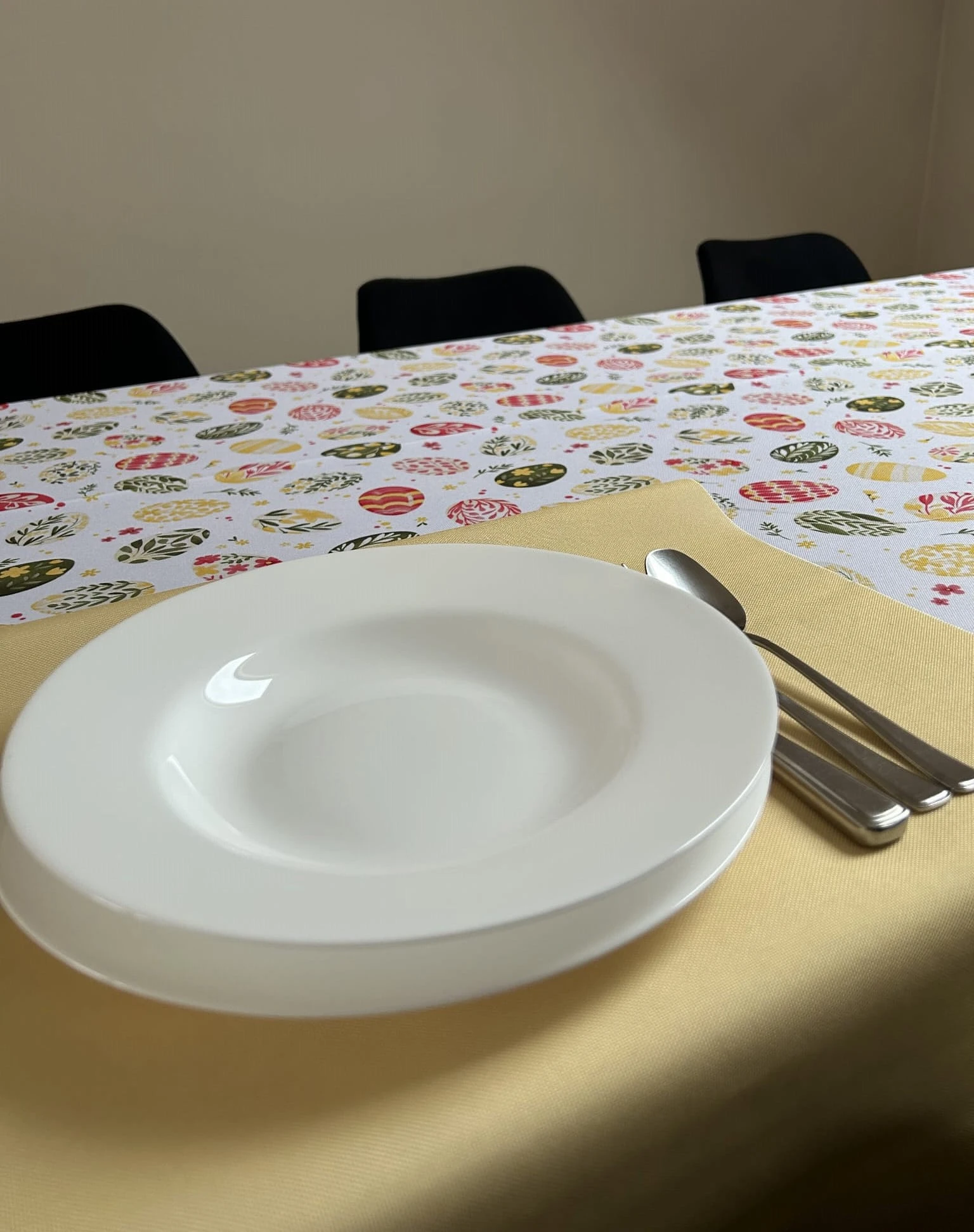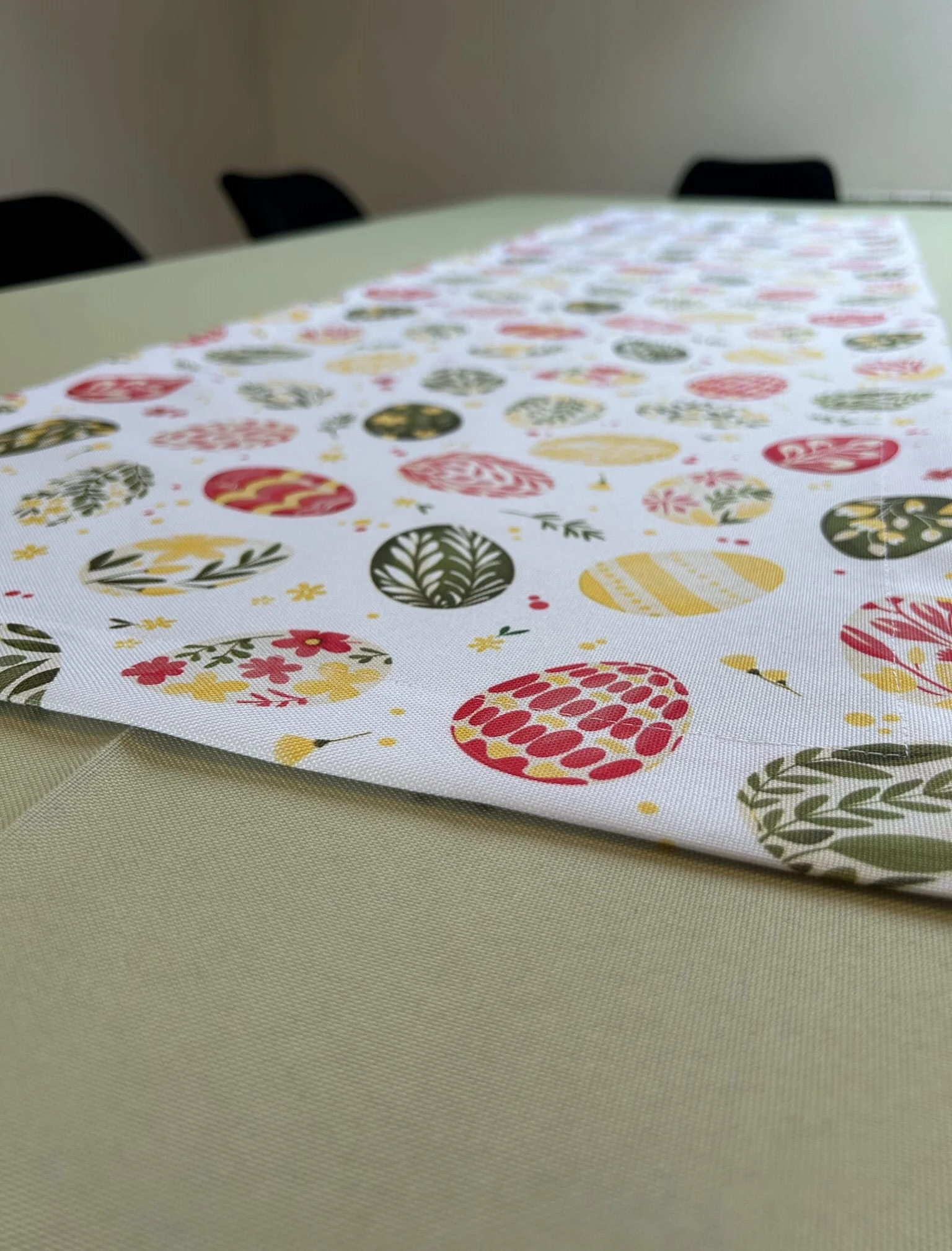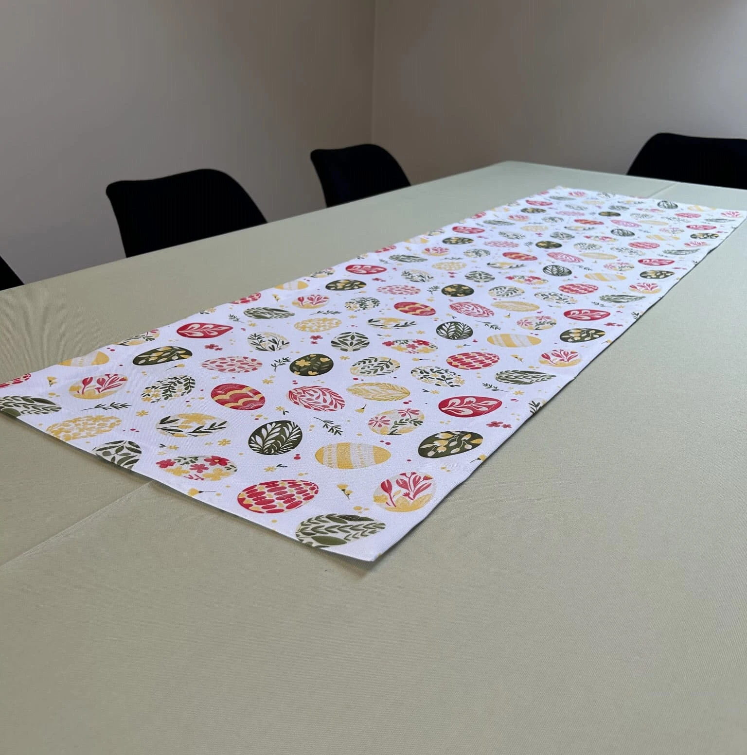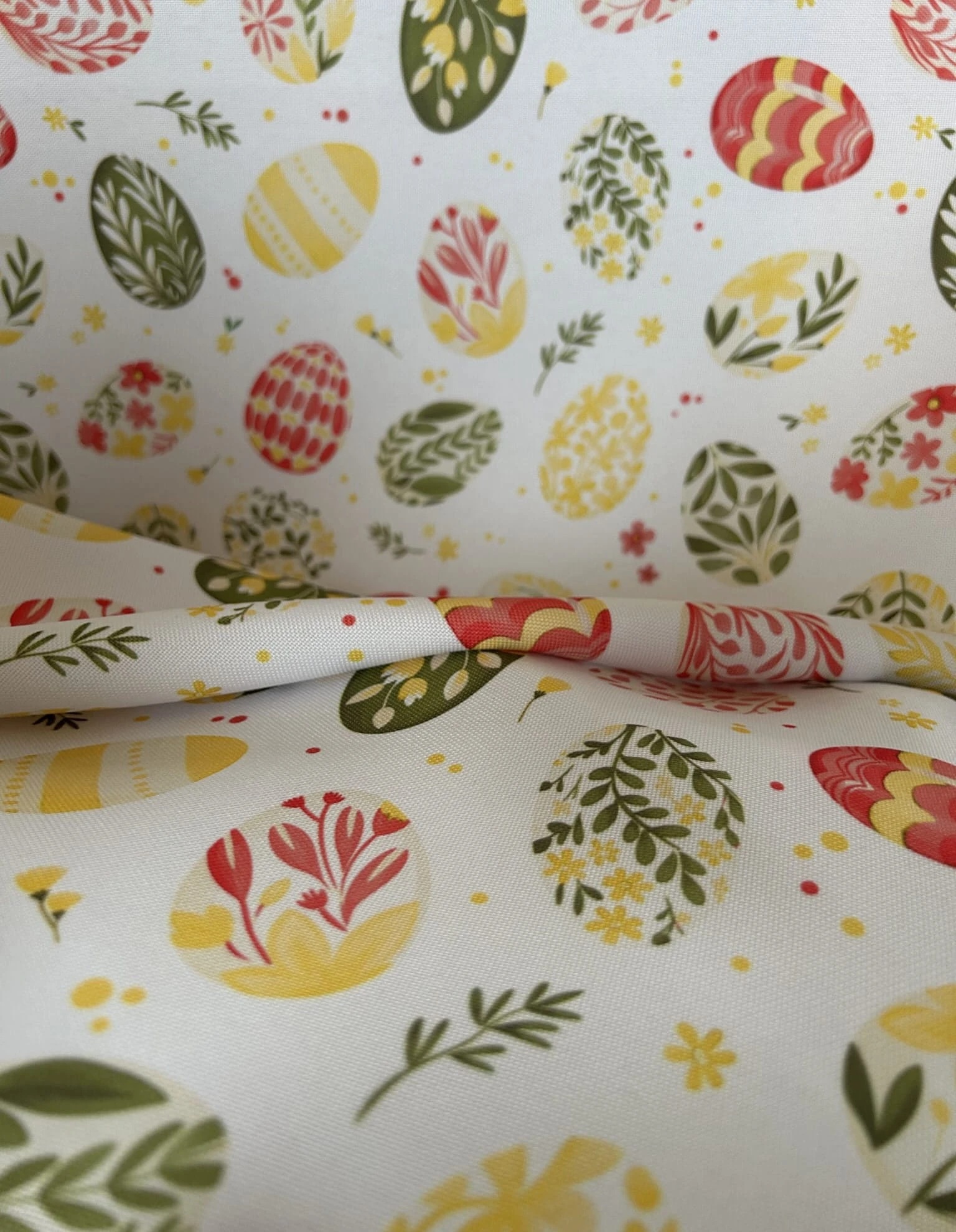 Biały obrus z kolorowym PISANKAMI WIELKANOCNYMI został uszyty z tkaniny wodoodpornej. Ponadto jest on starannie wykończony 4 cm listwą. Występuje w kilku rozmiarach.