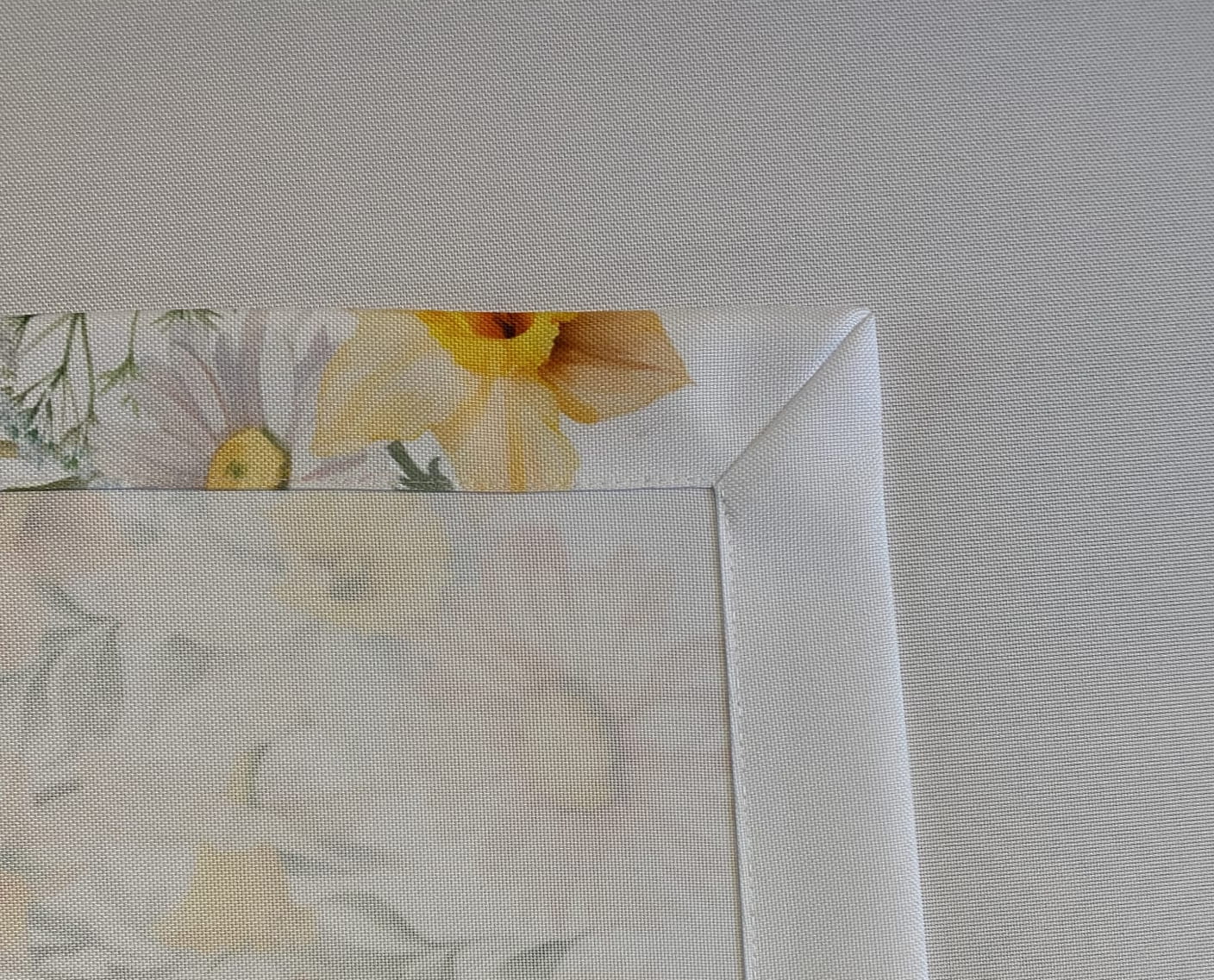Każdy OBRUS został starannie wykończony 4 cm listwą. Występuje w kilku rozmiarach. Idealnie komponuje się z bieżnikiem z tej samej kolekcji WIOSENNA POLANA (szlaki)