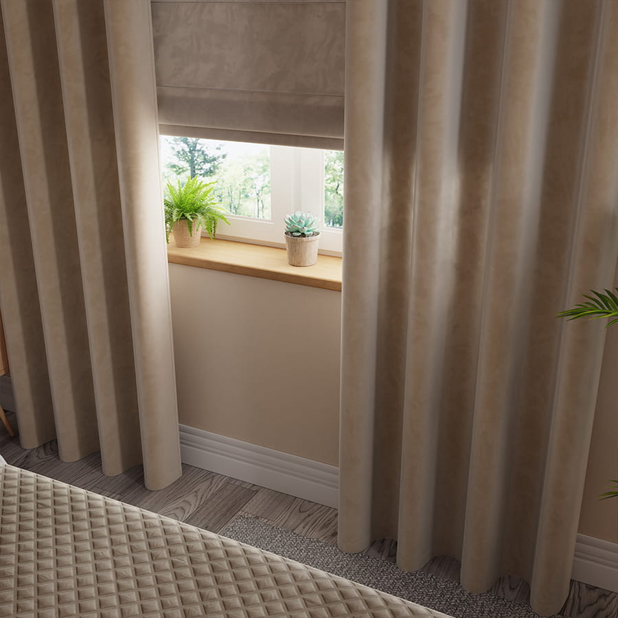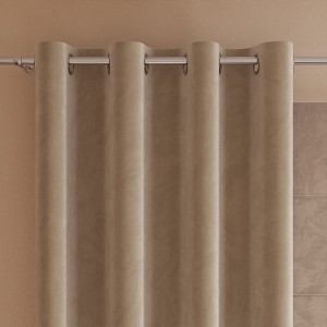 Eleganckie zasłony gotowe na przelotkach z niezwykle miłego w dotyku, aksamitnego materiału typu Velvet. Zasłona ma osiem metalowych, srebrnych przelotek i nadaje się bezpośrednio do zawieszenia na karnisz. Struktura materiału sprawia, że prasowanie (tylko na lewej stronie) nie musi być dokładne, a dla bardzo zapracowanych podpowiadamy - wystarczy po praniu "dobrze strzepnąć" i nikt nie zauważy braku żelazka. Po założeniu na okno , nadaje efekt półzaciemniający pomieszczenie. Każda zasłona jest starannie obszyta listwą, a góra, oprócz precyzyjnie wprowadzonych przelotek, posiada specjalną taśmę usztywniającą.
