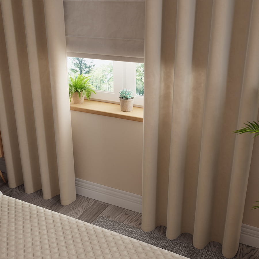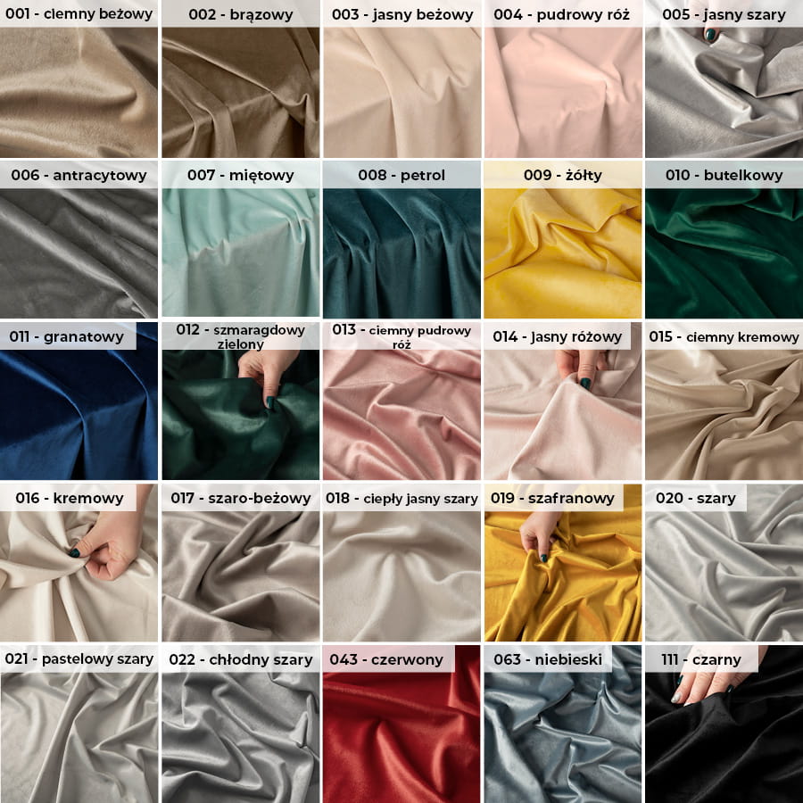 Eleganckie zasłony gotowe na przelotkach z niezwykle miłego w dotyku, aksamitnego materiału typu Velvet. Zasłona ma osiem metalowych, srebrnych przelotek i nadaje się bezpośrednio do zawieszenia na karnisz. Struktura materiału sprawia, że prasowanie (tylko na lewej stronie) nie musi być dokładne, a dla bardzo zapracowanych podpowiadamy - wystarczy po praniu "dobrze strzepnąć" i nikt nie zauważy braku żelazka. Po założeniu na okno , nadaje efekt półzaciemniający pomieszczenie. Każda zasłona jest starannie obszyta listwą, a góra, oprócz precyzyjnie wprowadzonych przelotek, posiada specjalną taśmę usztywniającą.